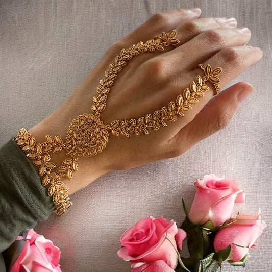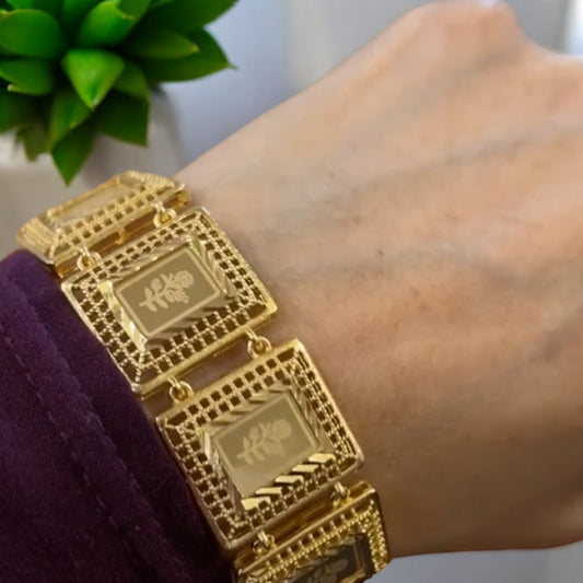 This Dar Yaseen hand kafa pleated Gold bracelet features adjustable rings and a length of...