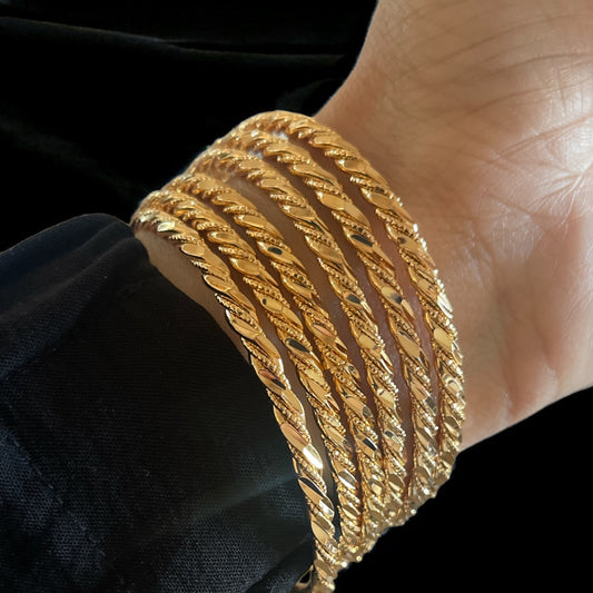 Bayt Naqquba 6pcs Bangles Pleated Gold