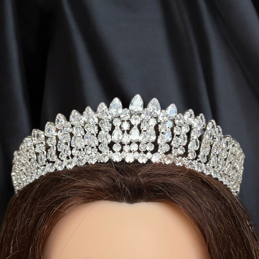 Yafa Zircon Stone Big Size Bridal Crown - Silver