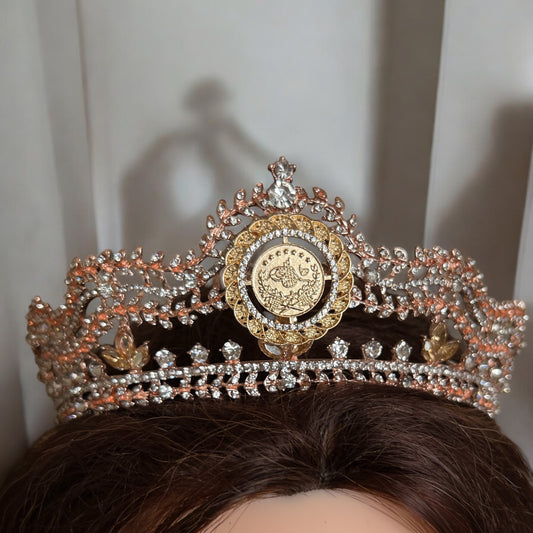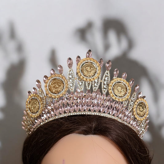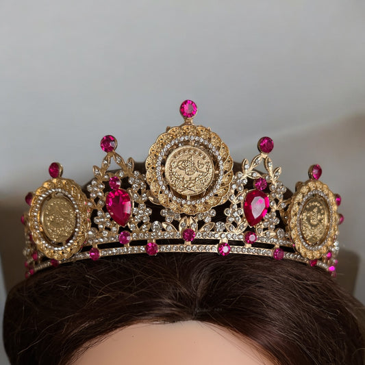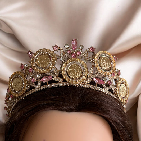 Luxury 2.5 inches high crown made of soft pink Nabi Ilyas coins. Elevate your style...