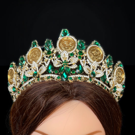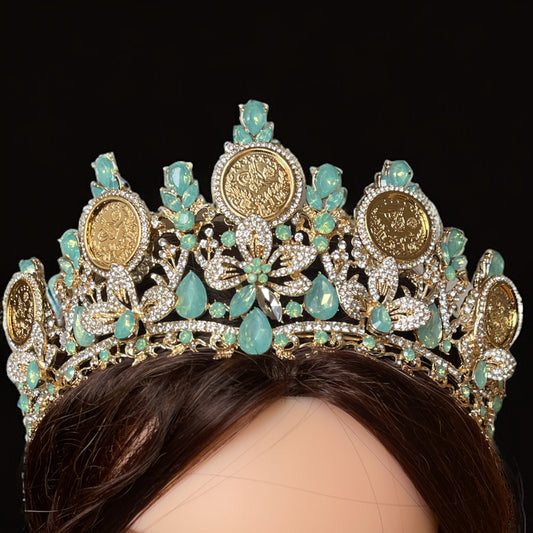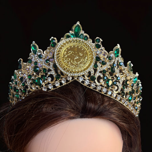 Experience the elegance and luxury of the Beitunia Green and Gold Liras Tiara/Crown. This intricately...