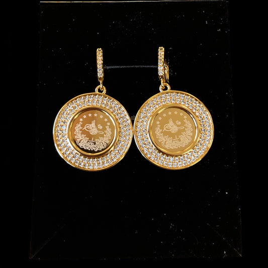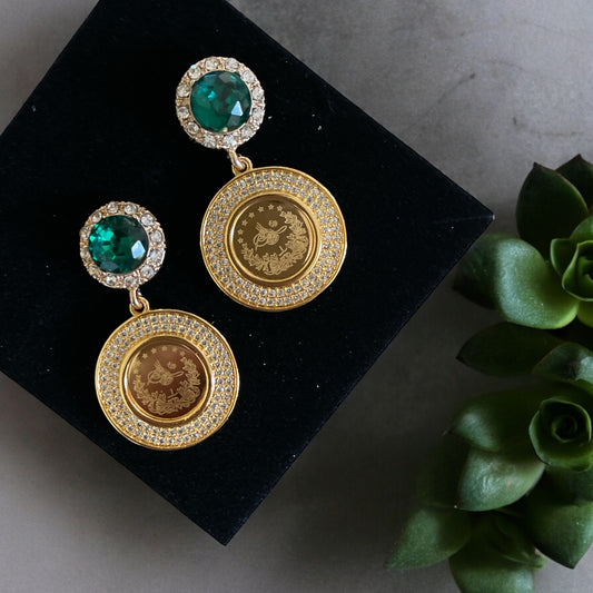 "Experience elegance and style with our Kafr Malik Green Gold lira earrings. These earrings...