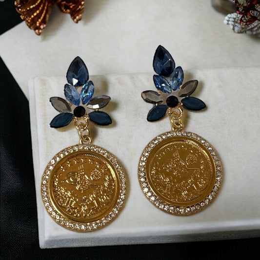 These Bal'a blue shades stud coin earrings feature varying shades of blue and measure 2.5...
