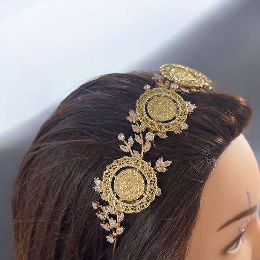 Elevate your style with the luxurious Betlaham five coins headband. Boasting a shiny finish and...