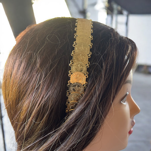 Elevate your style with our Salamah stacked coins headband. Made with stacked lira coins, this...