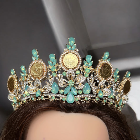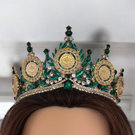 Experience elegance and royalty with the Dheisheh II Green and Gold crown. Boasting a stunning height...