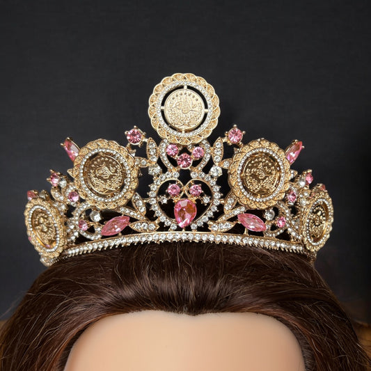 Experience elegance and royalty with the Dheisheh II Pink and Gold crown. Boasting a stunning height...