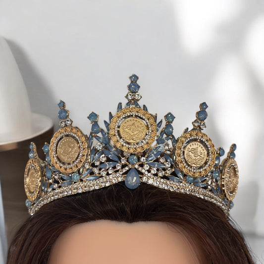 Experience elegance and royalty with the Dheisheh II Ice Blue and Gold crown. Boasting a stunning...