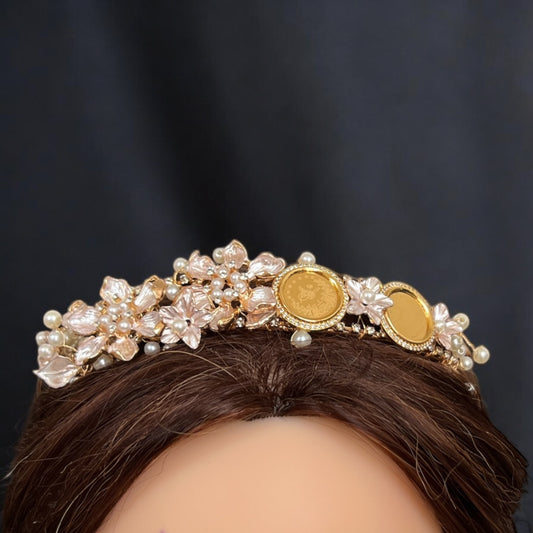 Luxury 2.5 inches high crown made of soft pink Nabi Ilyas coins. Elevate your style...