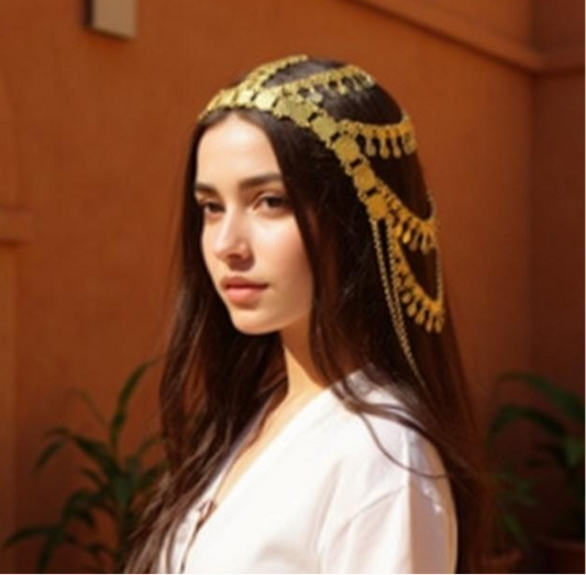 Experience luxury with the Raba eight coins head piece. This exquisite 10 inches by 9...