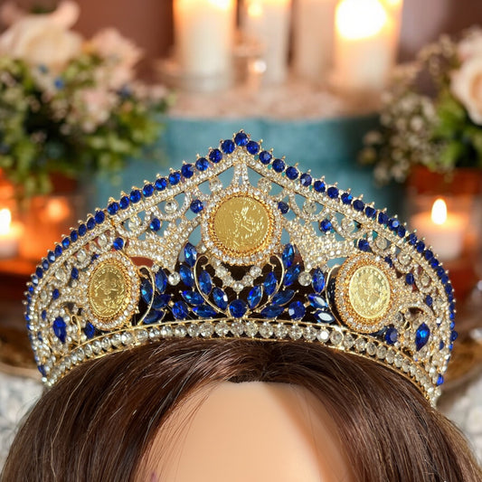 Expertly crafted Telfit Blue and Gold crown adorned with three beautifully designed coins. Perfect for...