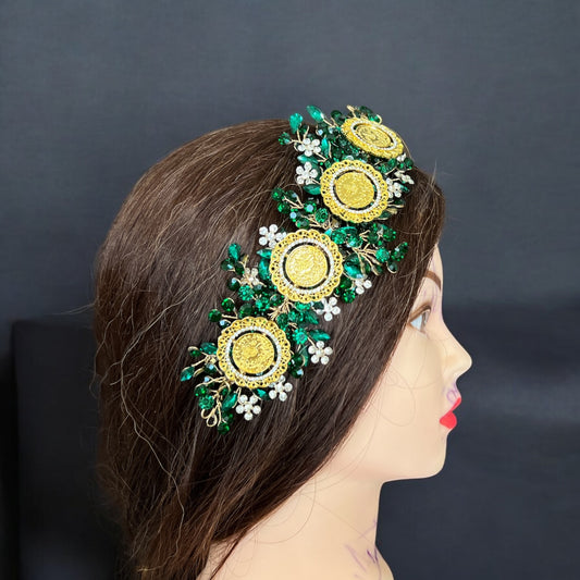 Experience the elegance and versatility of the Ammuriya Green four coins headpiece. With a flexible...