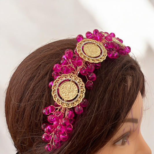 This Ramallah fushia/pink headband features five coins and is easy to wear. The vibrant color...