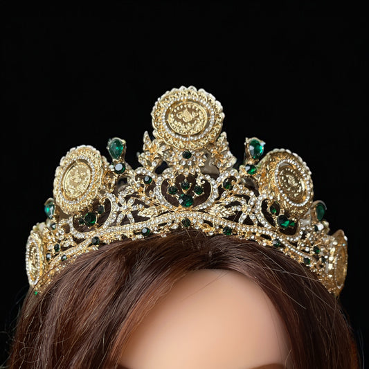 Elevate your bridal look with the Bayt Jala Gold and Green Crown. This stunning piece...