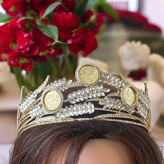 Enhance your royal attire with our Ramle Wheat spikes and coins tiara. This traditional headpiece,...