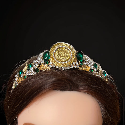 This Dayr Tarif Gold and Green tiara exudes elegance with its simple yet classic design....