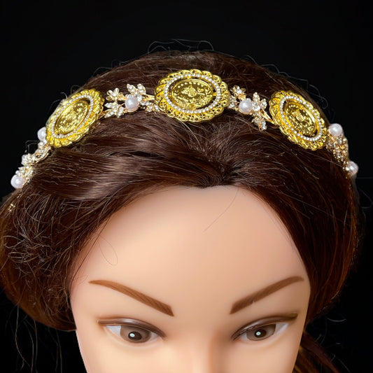 Enhance your look with the Yallo Pearls and Coins Headband. Featuring a classic and simple...