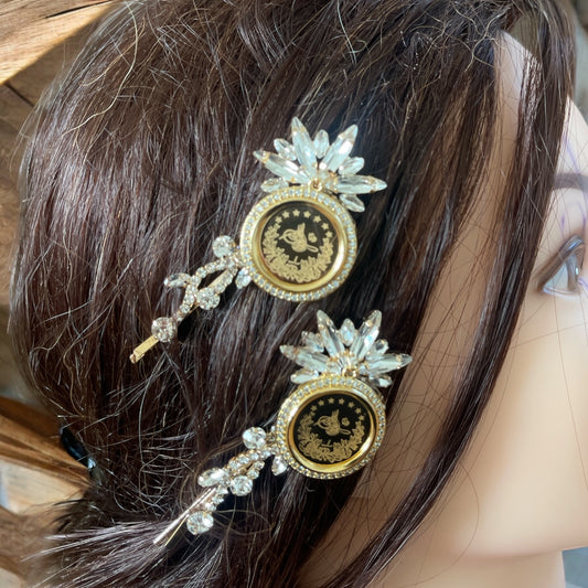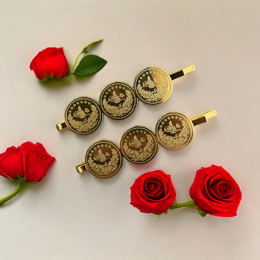 Introducing Bire Zait 2pc coins hair accessories. This set includes two pieces of stunning coin-inspired...