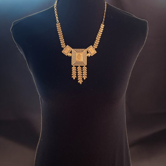 Expertly crafted with a shinny pleated 21k gold top material, the Al-Birah kardan Necklace adds...