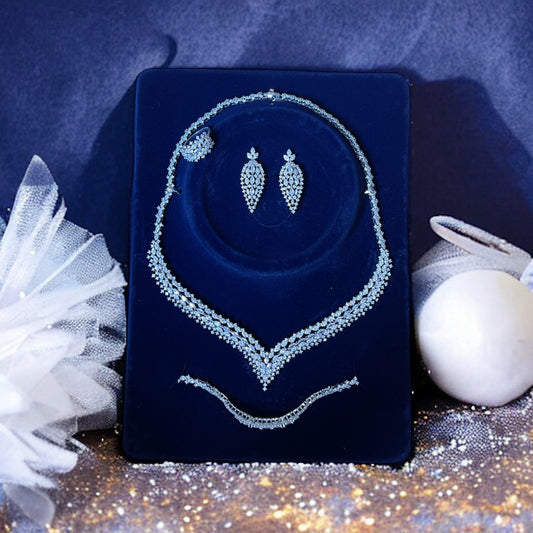 Luxurious and stunning Crystal and silver set includes: necklace bracelet earrings ring ( adjustable fits...
