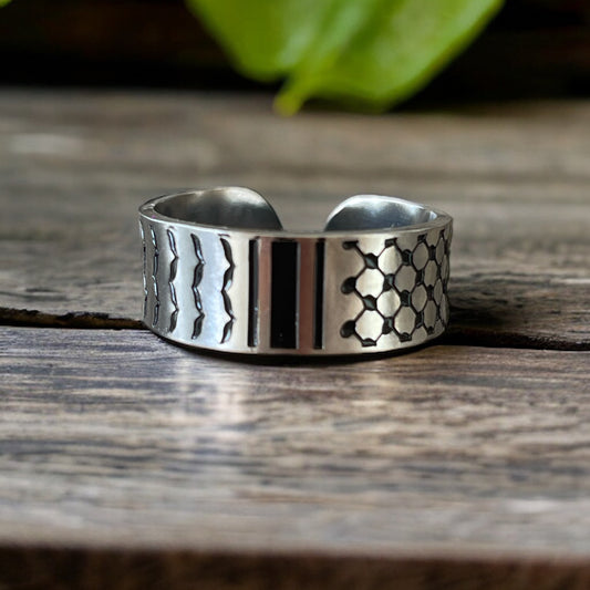 This Stainless Steel Palestine Kufya Ring features an adjustable design that can fit all sizes....