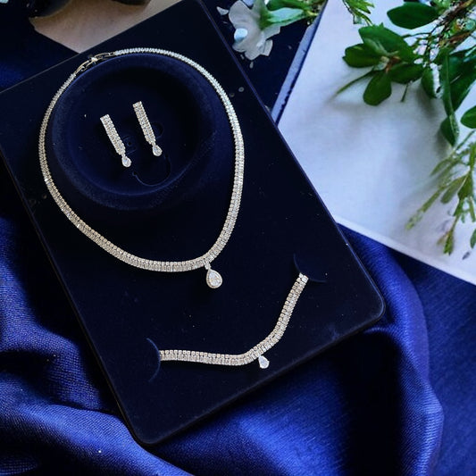 This Ayn Karim bridal jewelry set features a beautiful and elegant design that includes a...