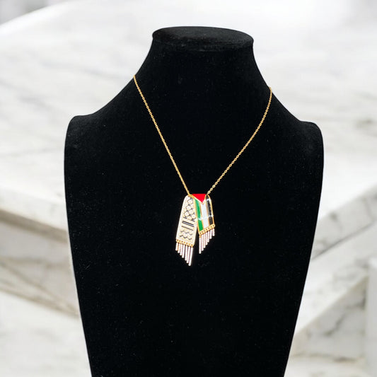 Show your support for the Palestinian people with this Kufya and Palestine flag necklace. Made...