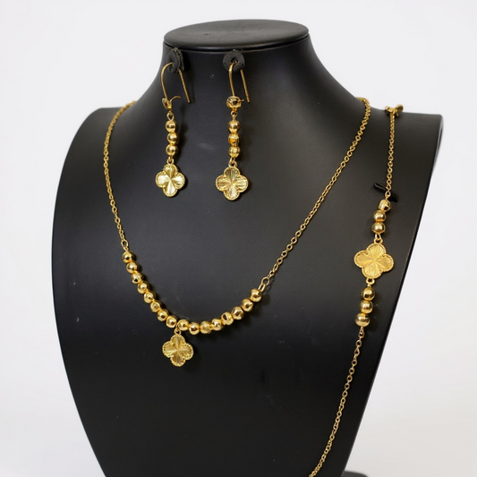 This elegant 18k pleated three-piece jewelry set includes a 18-inch necklace with an additional 2-inch...