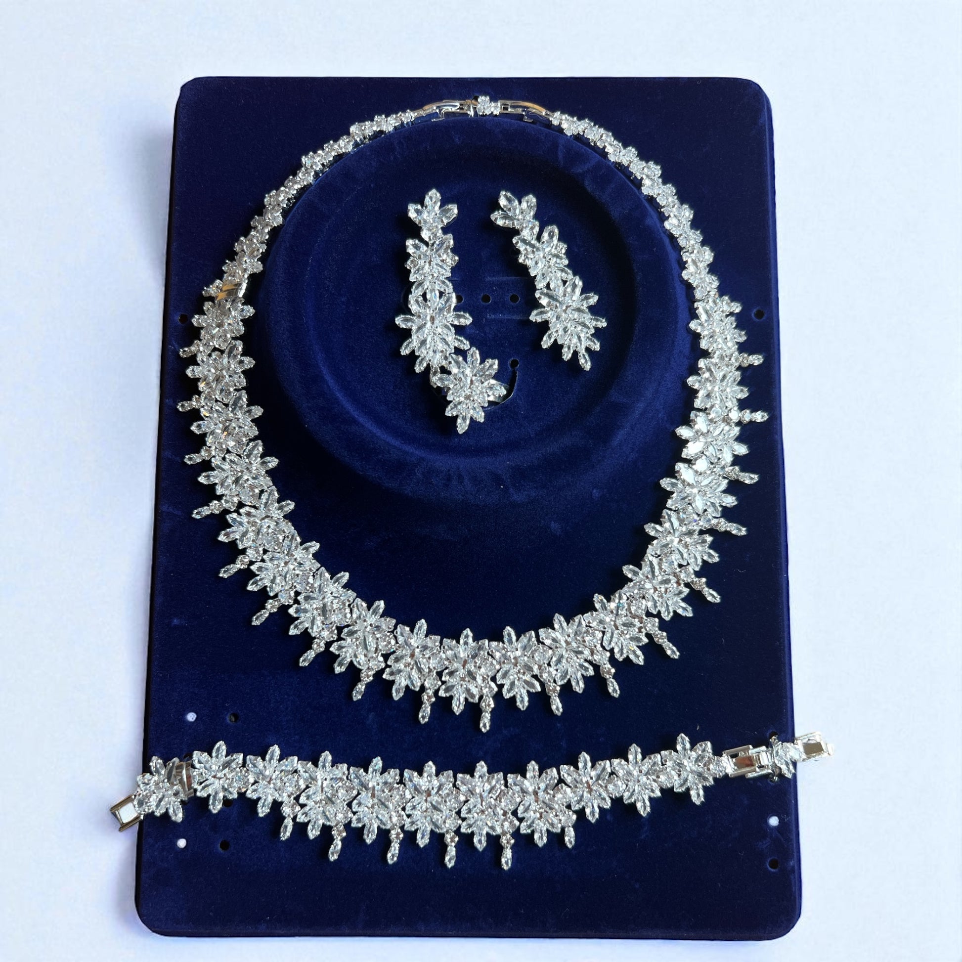 Upgrade your jewelry collection with the al-Midya II four pcs set. This luxurious necklace and bracelet set features adjustable pieces for a comfortable and stylish fit. Elevate your style and accessorize with confidence.