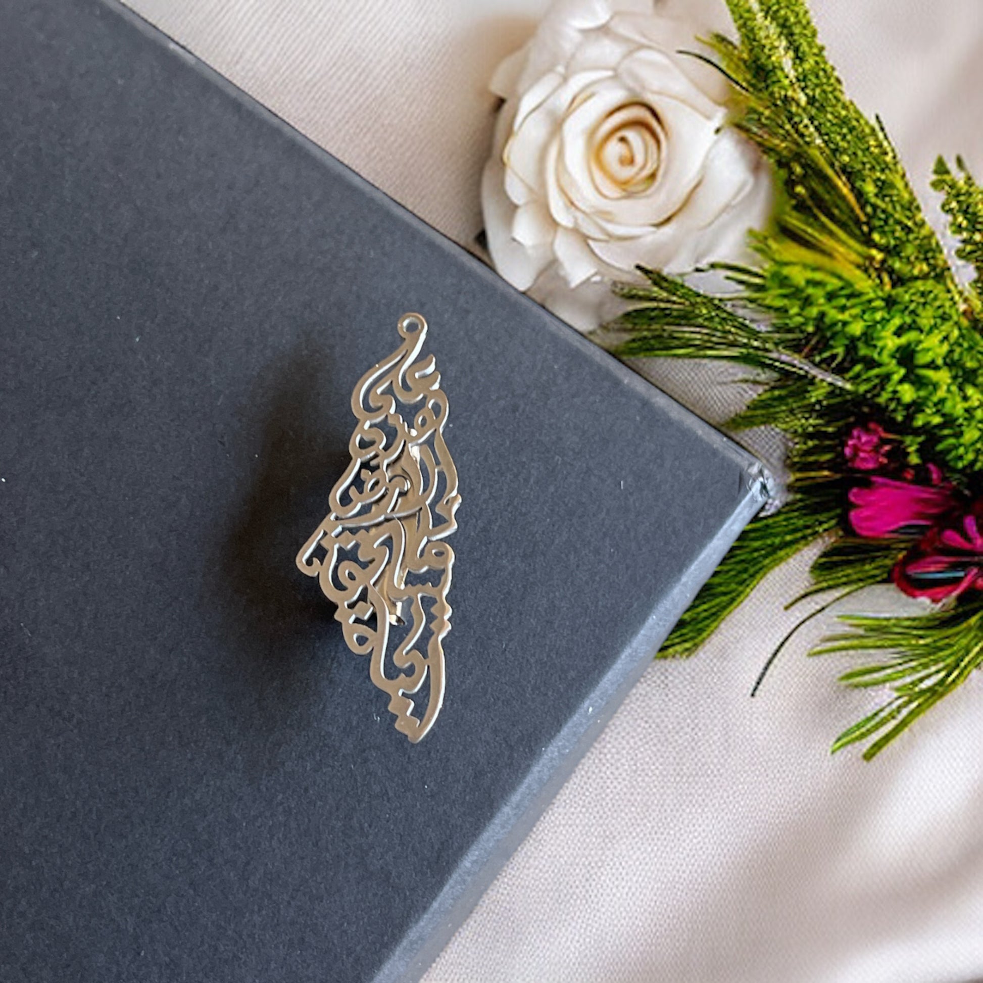 Discover a meaningful accessory with our "For him or her Palestine Mahmoud Darwish silver Brooch". Embrace the powerful quote "On this earth there is that which deserves life" by Mahmoud Darwesh, elegantly crafted into this silver brooch. Make a statement about your appreciation for life and literature with this unique piece.