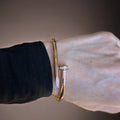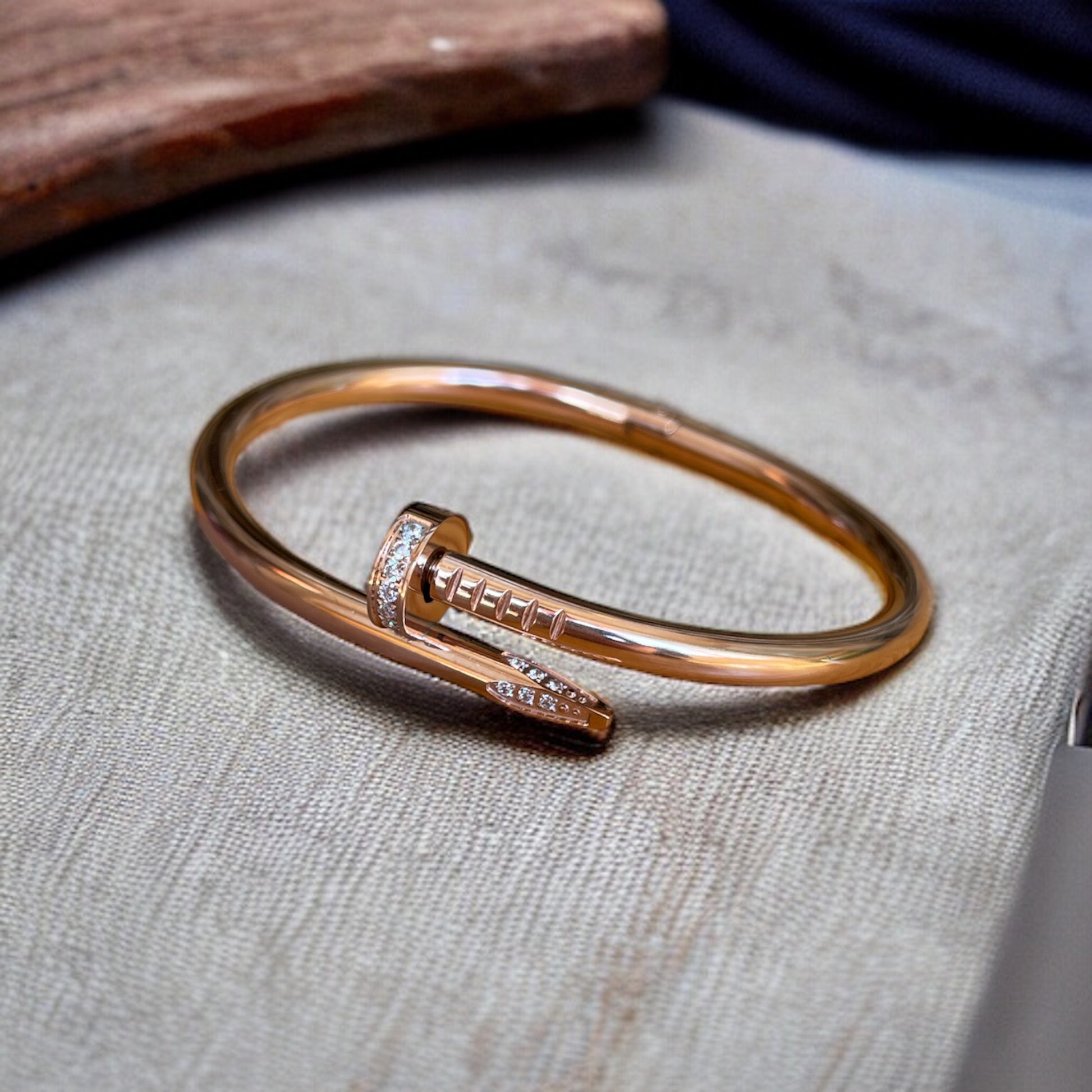 This Khirbat Iribbin Rose Gold Bracelet features an easy-to-use clasp, providing convenient and secure wear for any occasion. The sleek rose gold design adds a touch of elegance to any outfit, making it a versatile accessory for everyday wear.