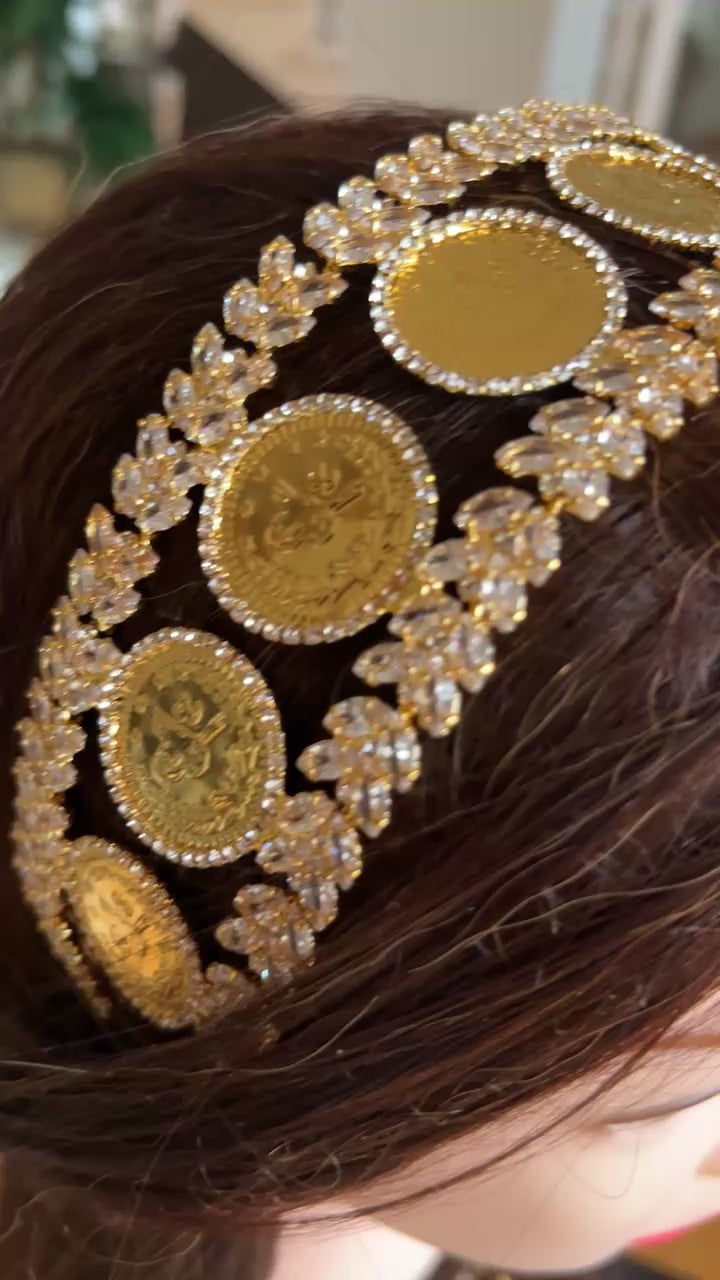 Introducing the Tell Balata Seven coins headband - a luxurious accessory that is 2 inches wide and 12 inches long. Elevate your style with this elegant piece, perfect for any occasion. Crafted with precision and quality, this headband is a must-have for every fashion-forward individual.