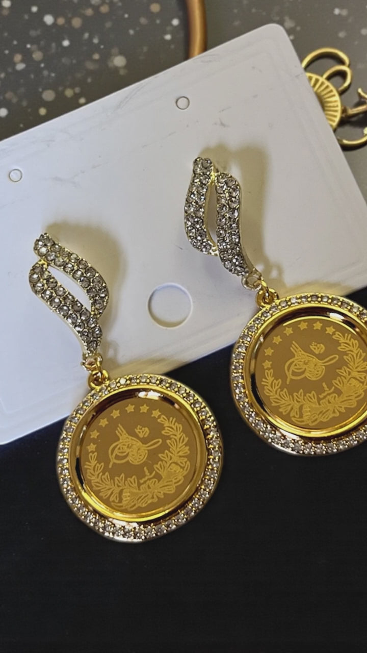 Discover the timeless elegance of our Western Buqei'a coin earrings. These 2-inch long stud earrings are the perfect statement piece for any outfit. Crafted with precision and attention to detail, these earrings will elevate your look with a touch of sophistication. Add a touch of history and luxury to your style with these stunning earrings.